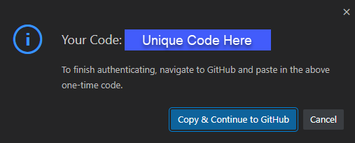 If this is our first time pushing to our forked repository, then VS Code will provide us with the following sign-in prompt:
