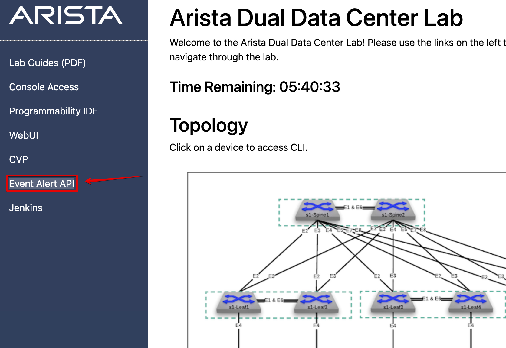 3. Now go back to your lab landing page and click on Event Alert API link.