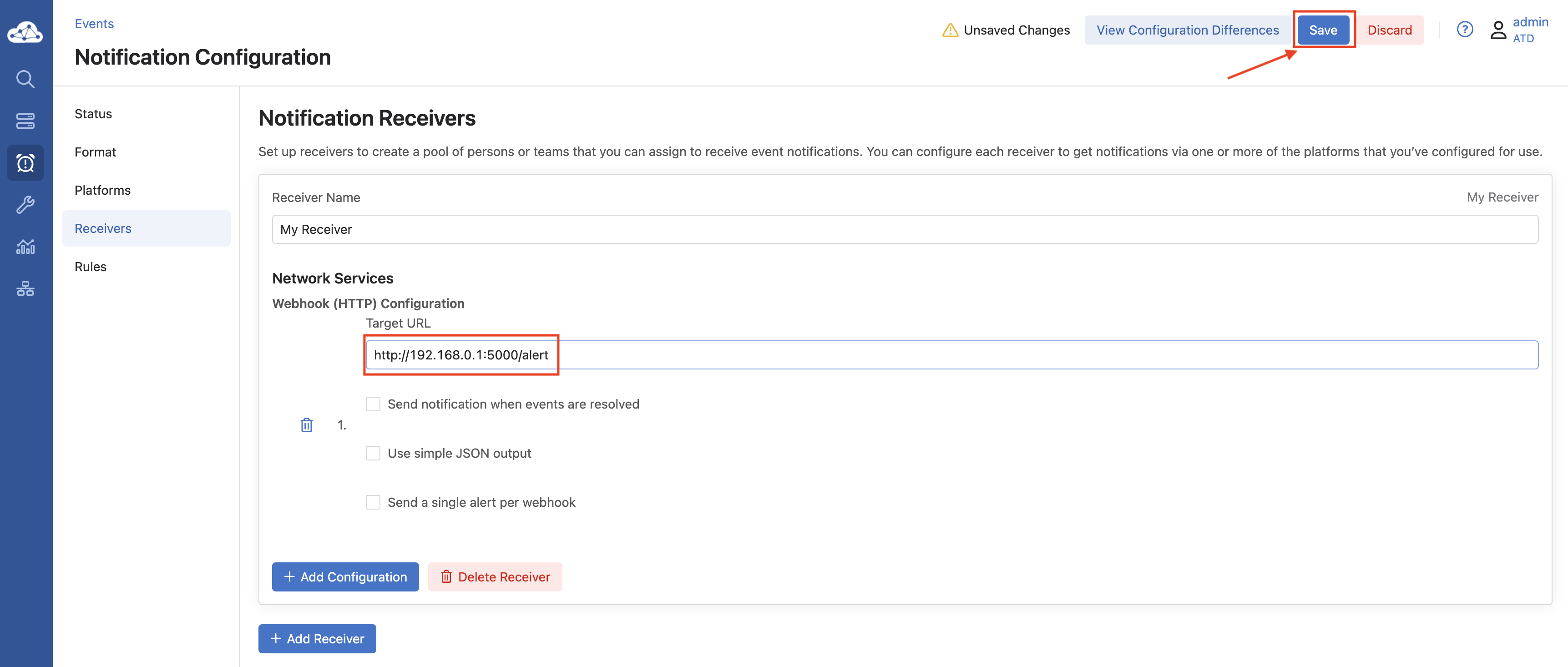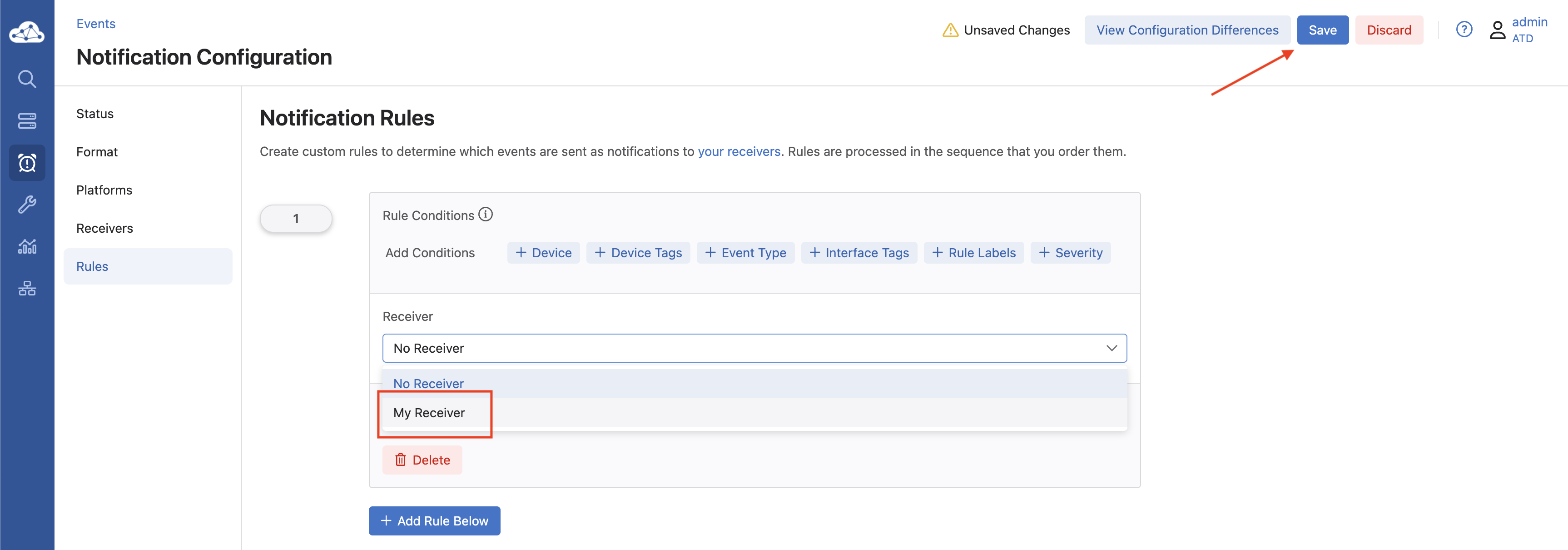3. In the Receiver section, click the drop down and select My Receiver, then click Save in the upper right corner.