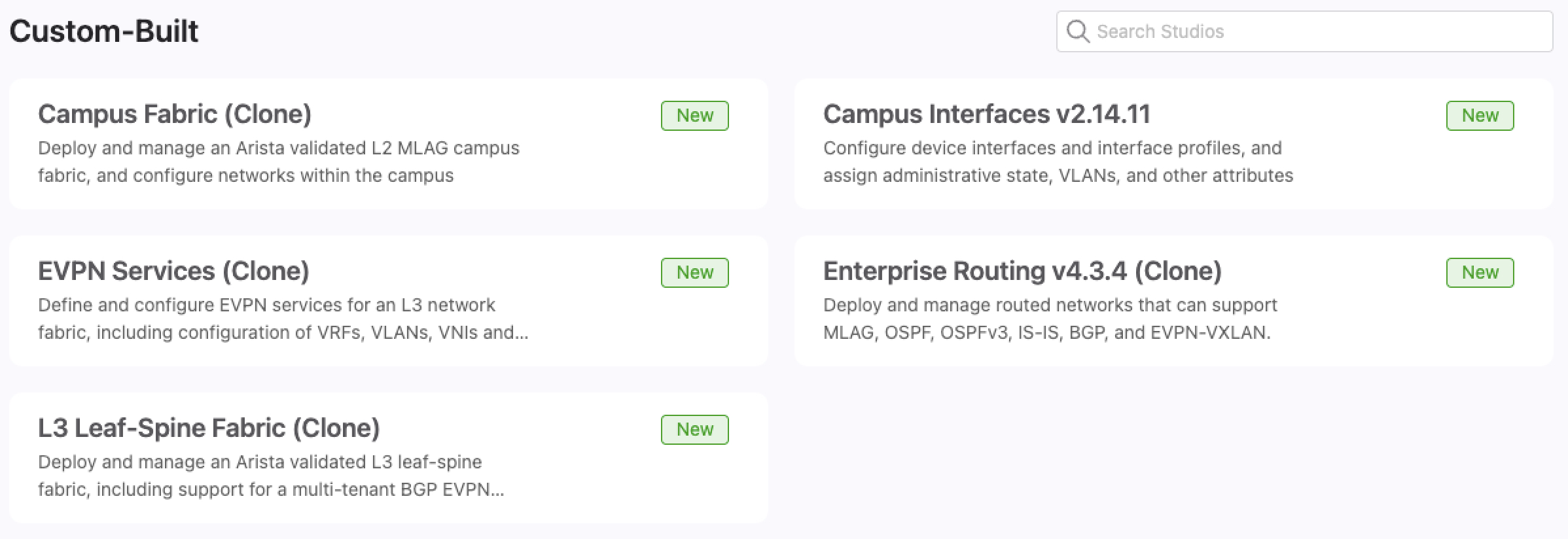 - CloudVisionPortal-Examples/CloudVision_Studios/InterOp_Examples_for_Studios/Studios_to_Use - The Studio versions to be used are stored in this directory.