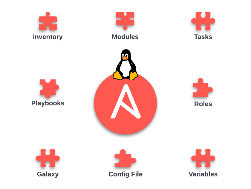 Like any other framework, Ansible is made up of a group of components that come together to make the magic happen. The components we'll focus on during this workshop are shown below.