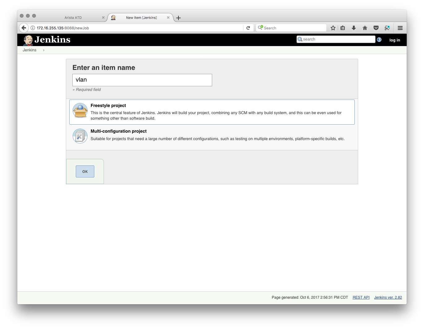 4. You will be greeted with a screen like the one below. Enter vlan as the name and select Freestyle project.