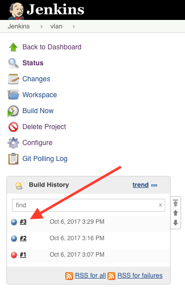 If you don't see the vlan build running, Jenkins keeps a history we can check to see if the execution was successful.