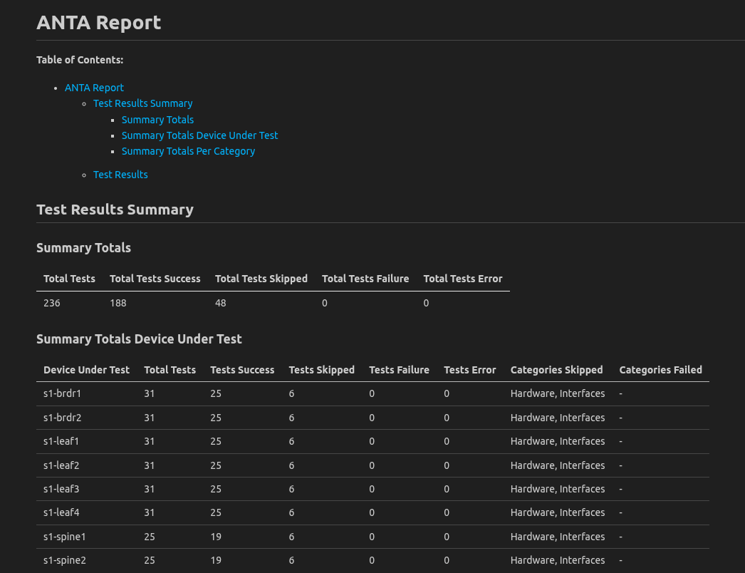 sites/site_1/anta/reports/anta_report.mdand take a look at what the first part of this report shows -