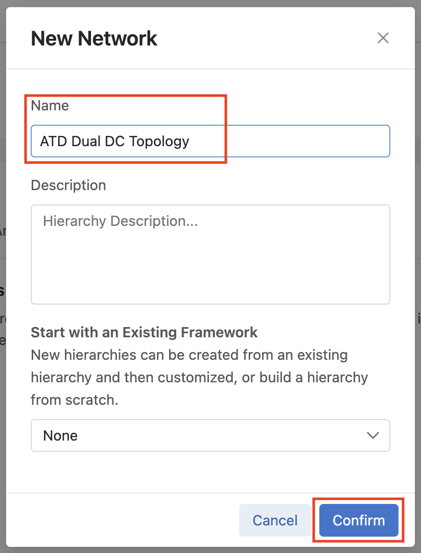 3. In the New Network window, give your hierarchy a name and click Confirm.