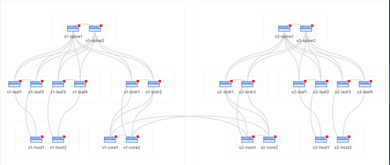 Within CloudVision, topology hierarchies are a way to customize the topology layout of your environment and devices that are reporting into CloudVision. This deviates from the standard CloudVision topology layout and allows you to more closely align the topology hierarchy, with how the environment really looks. This lab will walk you through the steps to create a custom topology hierarchy to match the dual Data Center ATD environment.